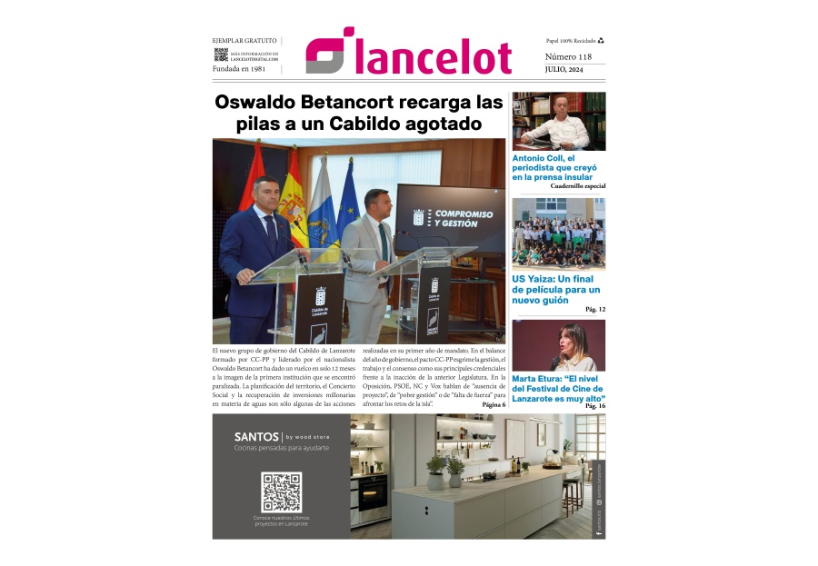 Además, el tema principal hace balance sobre el primer año de gobierno de Oswaldo Betancort. El nuevo grupo de gobierno del Cabildo de Lanzarote formado por CC-PP ha dado un vuelco en solo 12 meses a la imagen de la primera institución que se encontró paralizada. La planificación del territorio, el Concierto Social y la recuperación de inversiones millonarias en materia de aguas son sólo algunas de las acciones realizadas en su primer año de mandato. La increíble victoria del US Yaiza es otro de los temas centrales de este número, en el que también entrevistamos a la actriz Marta Etura que habla maravillas de la calidad del Festival de Cine de Lanzarote.