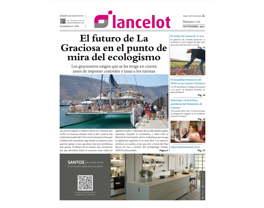 Un nuevo número del periódico Lancelot está ya en la calle, el correspondiente al mes de noviembre. En esta nueva edición, nos preguntamos si es preciso regular el número diario de visitantes que recibe La Graciosa durante todo el año. ¿Está la isla realmente masificada? A los vecinos les parece bien que el debate del crecimiento siga siendo un objetivo, pero quieren opinar y creen que ahora hay otros problemas más graves. El debate de los límites del crecimiento hay que abordarlo desde el consenso entre todos los agentes sociales, a sabiendas de las dificultades legales existentes. Impedir el crecimiento y sobre todo la libertad de movimiento de los ciudadanos que recoge la legislación española no es tarea fácil. Los expertos jurídicos, en cambio, creen que sólo a través del Plan Rector de Uso y Gestión del Archipiélago Chinijo (PRUG) sería posible. Otro de los reportajes centrales del periódico mira de cerca la situación del campo, cada vez más agostado. El gobierno de Oswaldo Betancort ha encontrado el ciclo integral del agua peor que el que dejó San Ginés a Corujo.