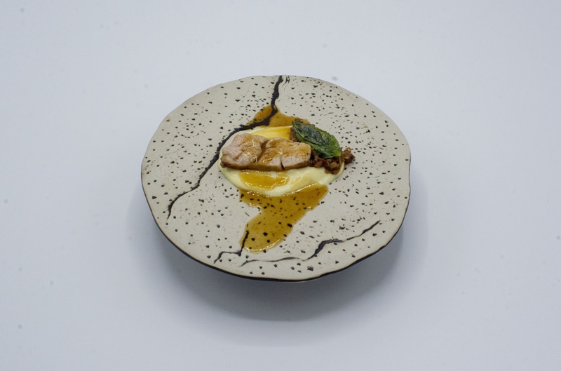 Jesús Arbelo, nacido en Lanzarote y estudiante en la Escola de Cuina Vila Retiro de Terres de l´Ebre ha basado su propuesta culinaria en la Molleja cocinada a baja temperatura con un duxelle de robellón, puré de patata y espuma de Mojo Picón.