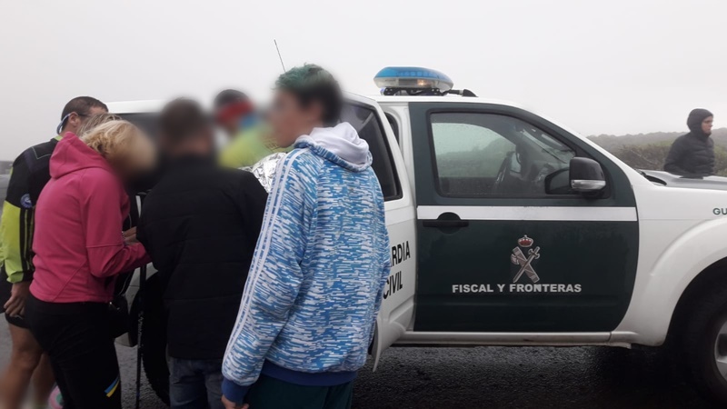 La Guardia Civil está trabajando en el lugar auxiliando a los corredores desorientados por la llovizna y la neblina al objeto de trasladarlos a una zona segura o puntos de avituallamiento establecidos.