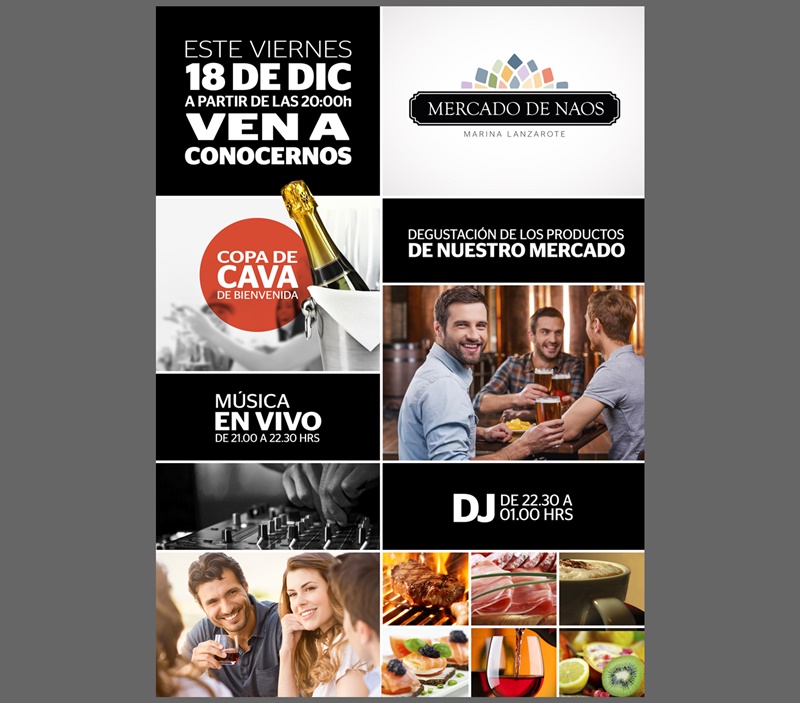El mercado gastronómico de Marina Lanzarote se renueva y pasa a llamarse Mercado de Naos. Bajo una nueva dirección, se ha renovado también la sala buscando un ambiente más acogedor así como la imagen del centro. El Mercado de Naos conserva algunos de los puestos referentes de la anterior etapa, como el de la carne que ahora pasa a llamarse “El Chuletón”, con una gran variedad de carnes a la parrilla, el Bocado Ibérico con su producto estrella, el jamón de bellota o el Lemon Love, que ofrece una alternativa vegetariana con sus hamburguesas de lentejas o su diversidad en la carta de ensaladas. También se suma la vinoteca, ahora “El Lagar de Parrilla” con una selección de caldos locales y de las principales denominaciones de origen, así como el puesto gourmet que es ahora “La Tablita”, donde los quesos y los pinchos elaborados a base de productos selectos toman el protagonismo.