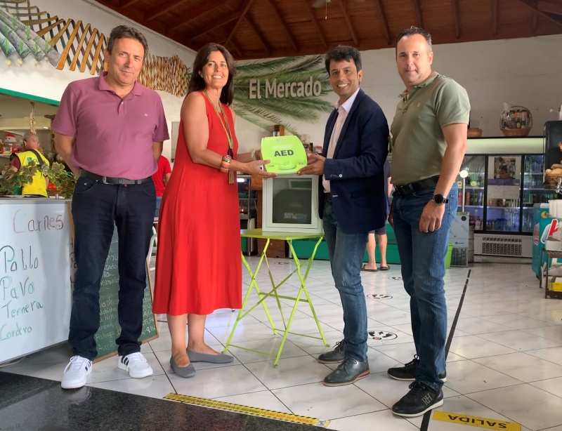 El desfibrilador dará cobertura a uno de los espacios más concurridos de la localidad de Haría, su mercado municipal, donde acuden turistas y residentes a disfrutar de los productos de la zona norte.
