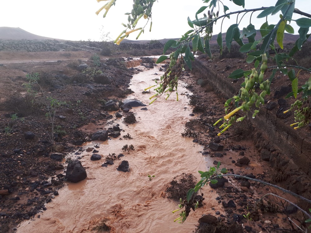 Los pueblos de de El Mojón y Los Valles, en Teguise, fue donde más agua cayó en este paso de la tormenta por la isla. Según los datos de los pluviómetros que tiene instalado el Servicio Insular Agrario del Cabildo por toda la isla, se registraron 58 litros por metro cuadrado entre las 8.00 horas del jueves y las 8.00 horas de hoy viernes.