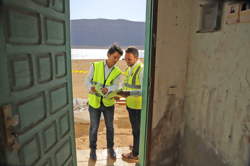 El Vicepresidente primero, Jacobo Medina, junto con el Consejero de Bienestar Social, Marcos Bergaz, visitaron este miércoles las obras acompañados de personal técnico y de la empresa, para comprobar "in situ" la evolución de unos trabajos muy esperados.