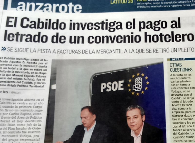 Según este diario, en dicho acuerdo se especificaba que Yudaya asumía la obligación de abonar el importe de los honorarios profesionales devengados por la representación procesal del Cabildo, bajo responsabilidad del letrado Acosta, constando en la contabilidad que, al menos, éste percibió el importe de tres facturas por importe de alrededor de 15.000 euros.