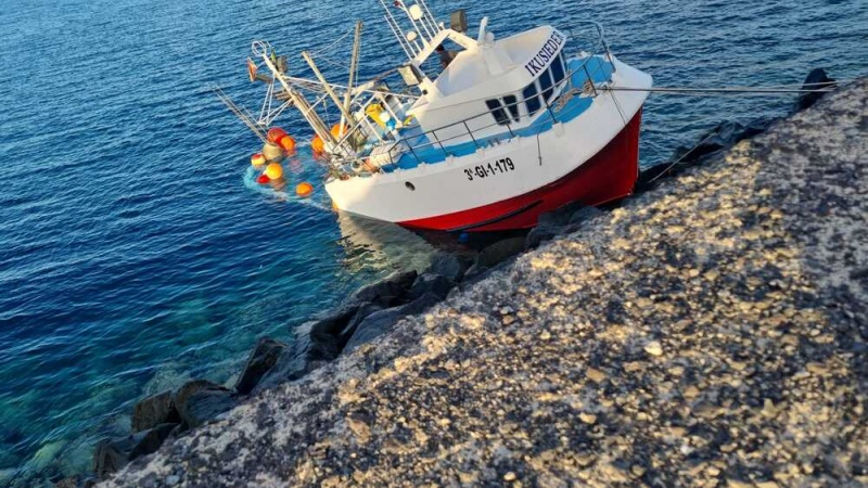 El pesquero Ikusieder encalla en la escollera del Puerto de la Tiñosa