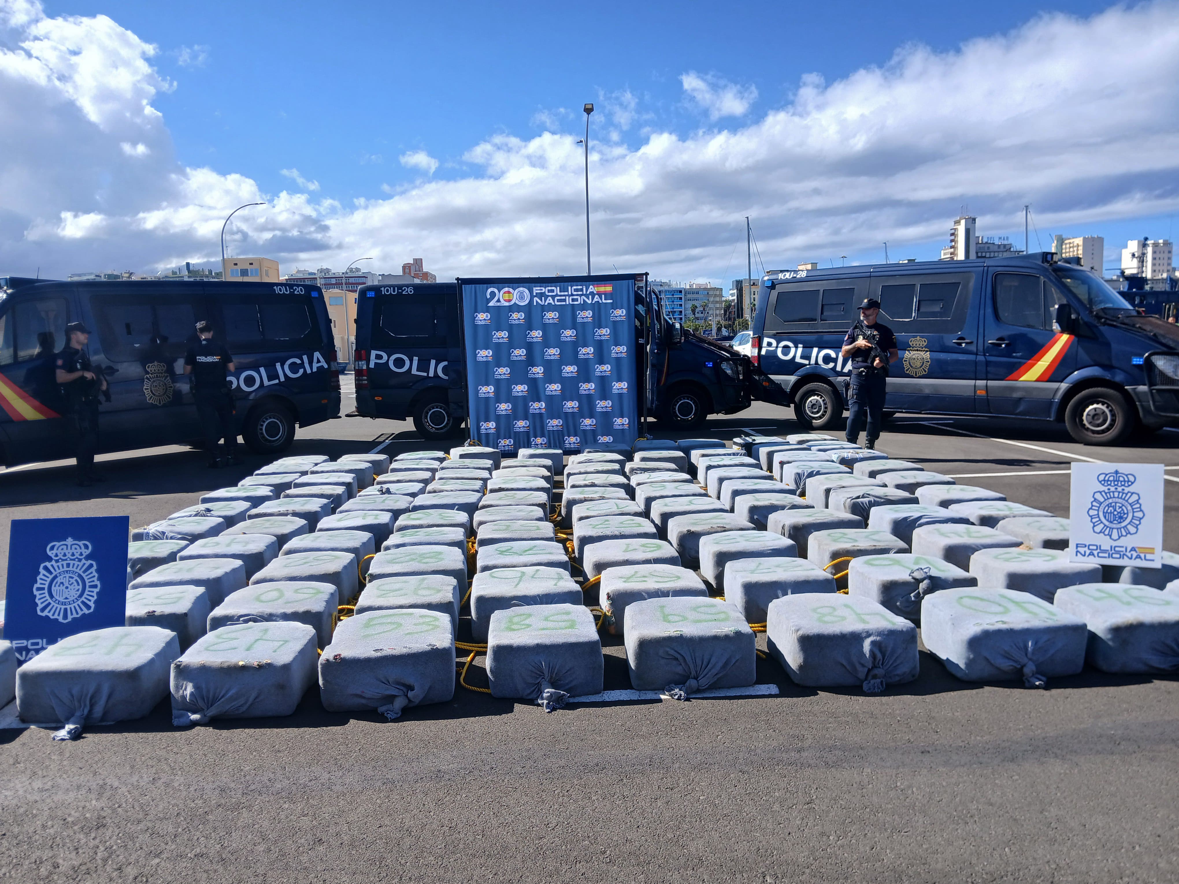 La Policía Nacional intervenía esta semana más de 4.000 kilos de cocaína en un pesquero de bandera panameña al oeste de la costa canaria. Tras el abordaje del buque, en el que tuvo que participar el Grupo Especial de Operaciones (GEO), se arrestó a los quince tripulantes y se localizaron cien fardos de cocaína de unos 40 kilos cada uno.