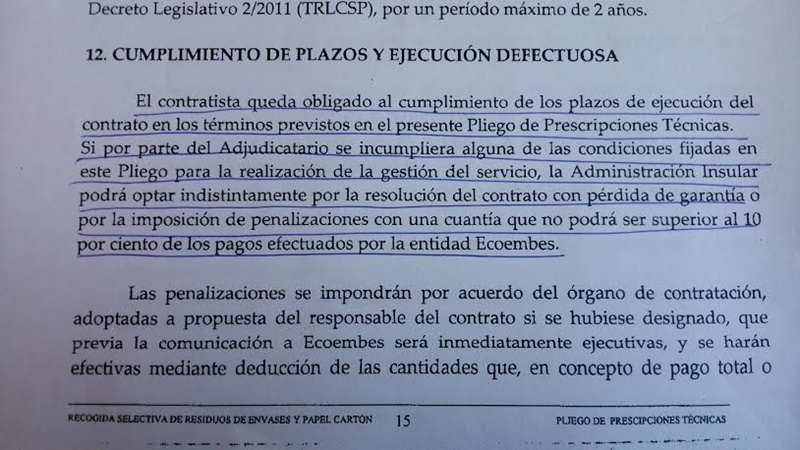 Por su parte, “el Cabildo está obligado a hacer un seguimiento escrupuloso del cumplimiento de las condiciones del contrato y aplicar las sanciones pertinentes en caso de su vulneración”.