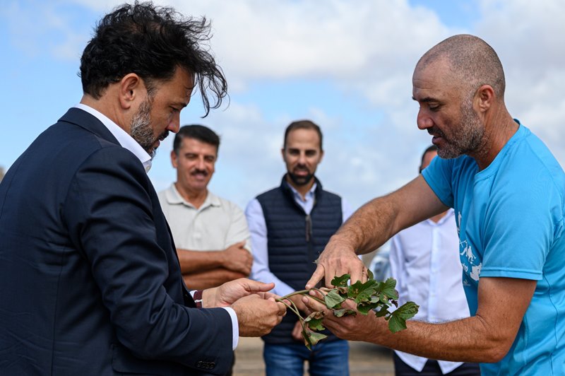 Durante su estancia en la isla, Guillermo Mariscal también ha querido acercarse hasta la zona del jable para conocer las condiciones en las que se realiza el cultivo y la producción de batatas, destacando la gran labor que realizan los agricultores en un medio aparentemente tan hostil y el trabajo que viene desempeñando la Sociedad Agraria de Transformación "El Jable".
