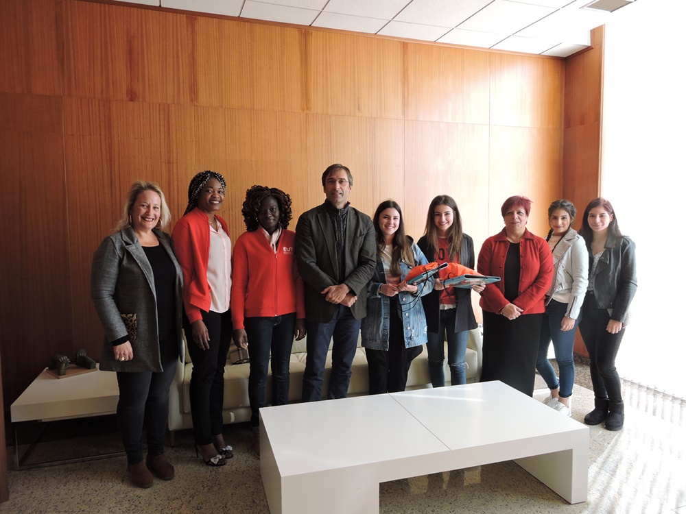 El presidente del Cabildo de Lanzarote, Pedro San Ginés, recibió hoy miércoles a cuatro estudiantes de Italia (Macerata) y del país africano Benín (Abomey-Calavi) que realizan estudios en la Escuela Universitaria de Turismo de Lanzarote (EUTL), dentro de los Programas de Movilidad Erasmus+, acompañadas de dos estudiantes mentoras de tercero de Grado en Turismo, quienes las apoyan durante su estancia en el centro. Las alumnas estuvieron acompañadas por la Consejera de Educación del Cabildo de Lanzarote, Carmen Rosa Márquez; y la directora de la Escuela Universitaria de Turismo. Adscrita a la ULPGC, Eva María Crespo Fontes.