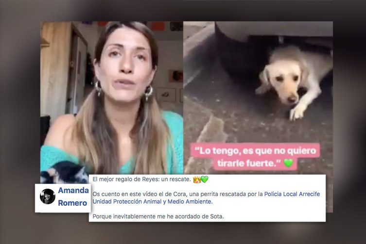 La sensibilidad y dedicación demostrada por los agentes Fran Godoy y Rafa Méndez de la Unidad de Portección Animal de la Policía Local de Arrecife en el rescate a una perrita ha sacudido a las redes sociales.