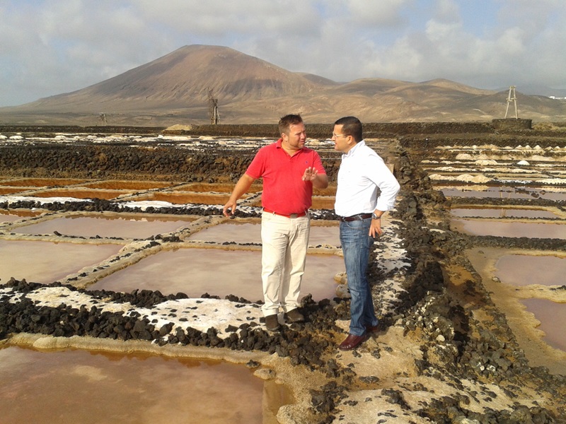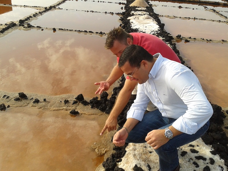 Óscar Luzardo visitó las salinas de la costa de Guatiza, recuperadas y explotadas con éxito por una pequeña empresa familiar