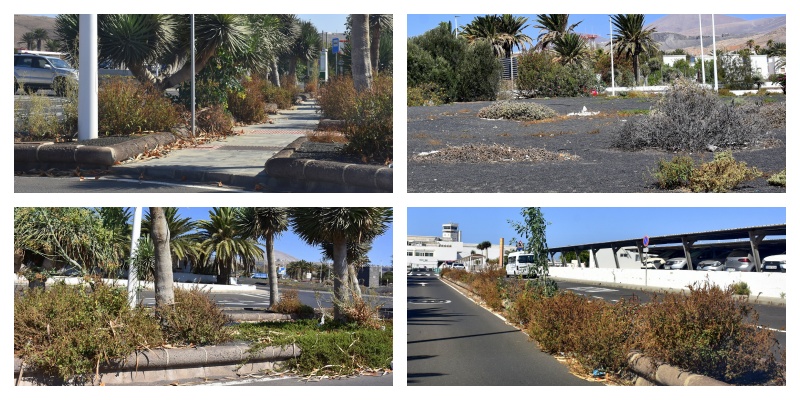Basura, árboles en mal estado, jardines descuidados, plástico, plantas muertas… la imagen que ofrece el Aeropuerto de Lanzarote, puerta de entrada de la isla, es de absoluta dejadez.