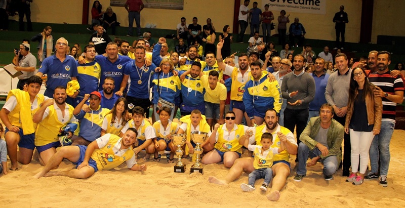 El presidente del Cabildo insular, Pedro San Ginés, entregó el trofeo de campeón al capitán del equipo senior, Aarón Santana y al mandador Ángel Lago. El alcalde de Yaiza, Óscar Noda, el concejal de Deportes, Daniel Medina y el edil de Festejos, Javier Camacho, que acompañaron al Club en la noche de finales de San Bartolomé, felicitan a los entrenadores Ángel Lago y Tomás Quesada, a todos los luchadores de los equipos senior y juvenil, a la directiva del Club y a los patrocinadores por este grandísimo triunfo colectivo que la afición sureña disfruta junto a sus héroes. El Ayuntamiento asimismo destaca el apoyo incondicional de la afición durante toda la temporada.
