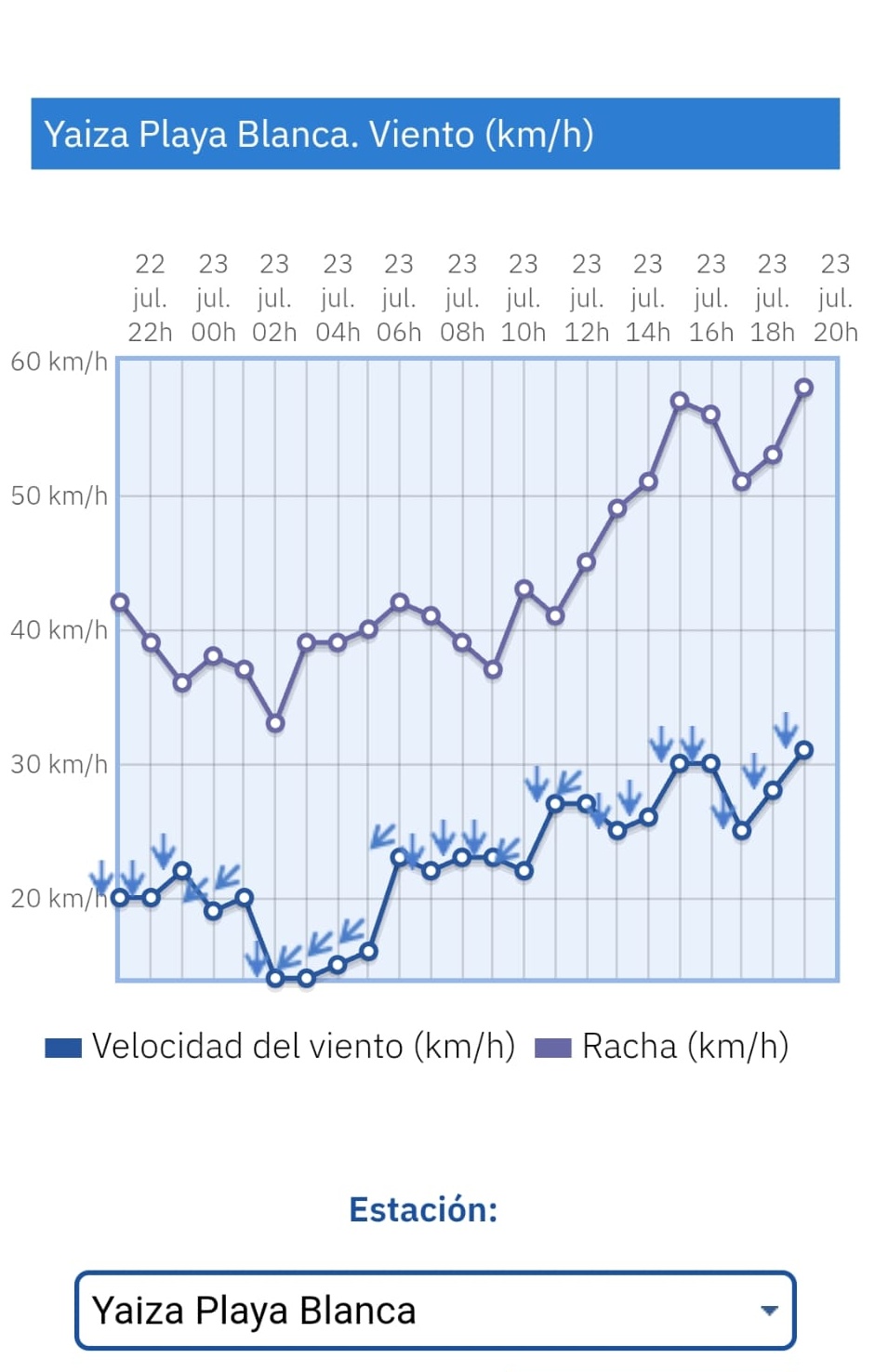 Lanzarote vivió el pasado miércoles por la tarde una jornada marcada por fuertes vientos con rachas de hasta 80 kilómetros por hora que dejaron multitud de incidentes: cables y placas caídas, palmeras y farolas arrancadas y carteles con riesgo de caída protagonizaron una excepcional jornada veraniega.