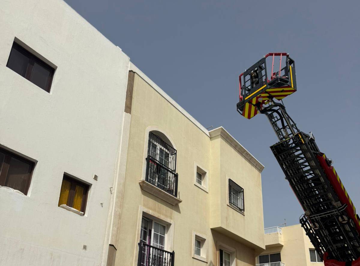 En Arrecife, en la calle León y Castillo, la Policía Local solicitó la colaboración de los servicios de emergencia ante el riesgo de caída de dos ventanas en una vivienda antigua desocupada. Con ayuda de una autoescala se accedió a la primera planta y se aseguraron las hojas atornillándolas a la estructura. También en la capital, en la calle Oviedo, se actuó ante la caída de cascotes desde una vivienda de dos plantas. Parte del enfoscado de una columna ya se había desprendido y se procedió a retirar el material suelto desde la parte alta, eliminando el peligro para los viandantes.