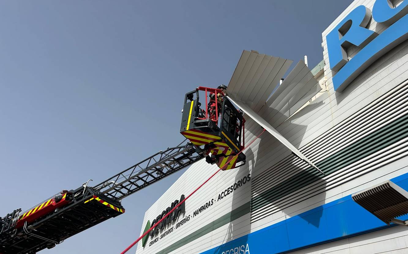 Las incidencias se extendieron también a Puerto del Carmen, donde una plancha de plástico rota en la pérgola de un apartamento golpeaba el techo con riesgo de desprendimiento. Fue asegurada para minimizar el peligro. En Playa Honda, en la fachada de una nave industrial, varias chapas amenazaban con ser arrancadas por el viento y caer sobre la autovía. La Policía Local cortó un carril para facilitar los trabajos, que incluyeron el corte con radial de una plancha colgante y la fijación del resto de elementos inestables.