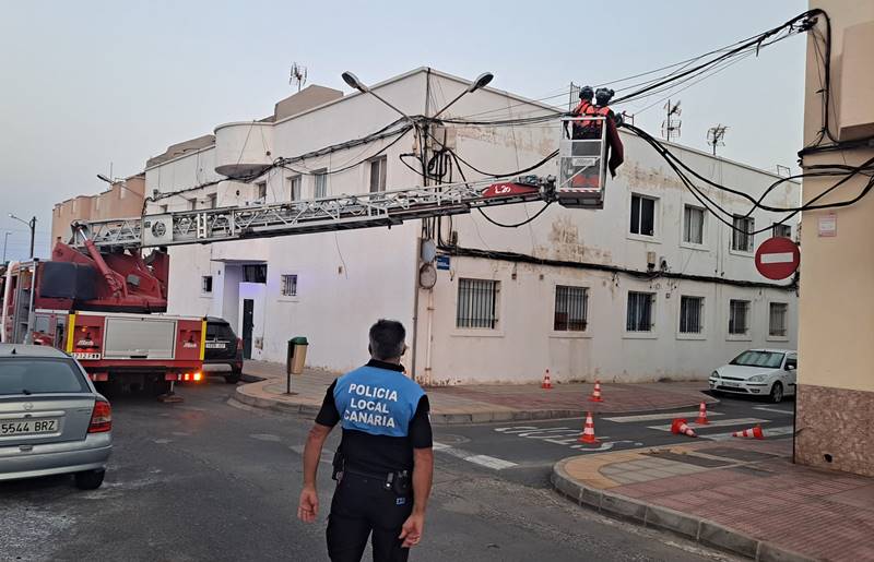 En la tarde de este pasado jueves, el fuerte viento causó causaron diversos incidentes en la isla. A las 20:45, se reportó un cable descolgado en la Calle Maciot de Betancort, de Arrecife. Las unidades de emergencia se dirigieron al lugar para asegurar el cable eléctrico, evitando así posibles accidentes.