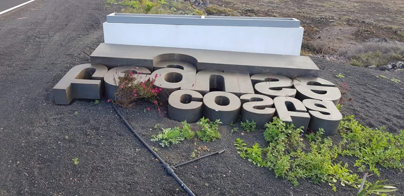 El viento tumba la señalización que da la bienvenida a Costa Teguise