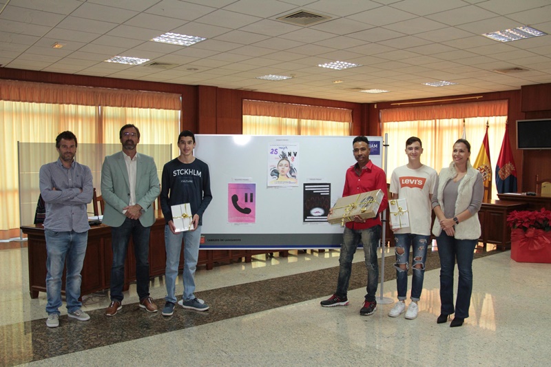 Elly Jean Bonilla del IES Tías con la obra: "Si te maltrata y no haces nada estás dejando que lo haga. Denuncia" se alzó con el primer permio del VI Concurso de carteles contra la violencia de género que organiza el Cabildo de Lanzarote, a través de la Consejería de Bienestar Social, que dirige Maite Corujo (PP). También resultaron ganadores Alberto Delgado, del IES Tinajo con el cartel "No dejes la llamada en espera" y Alexis Hernández del IES Pancho Lasso con su obra "Mi cuerpo no es tu consumo, si violas a una nos violas a todas". El presidente del Cabildo de Lanzarote, Pedro San Ginés, también se acercó a felicitar a estas jóvenes promesas, que además están sensibilizadas y aportan su trabajo e intelecto para luchar contra la violencia.