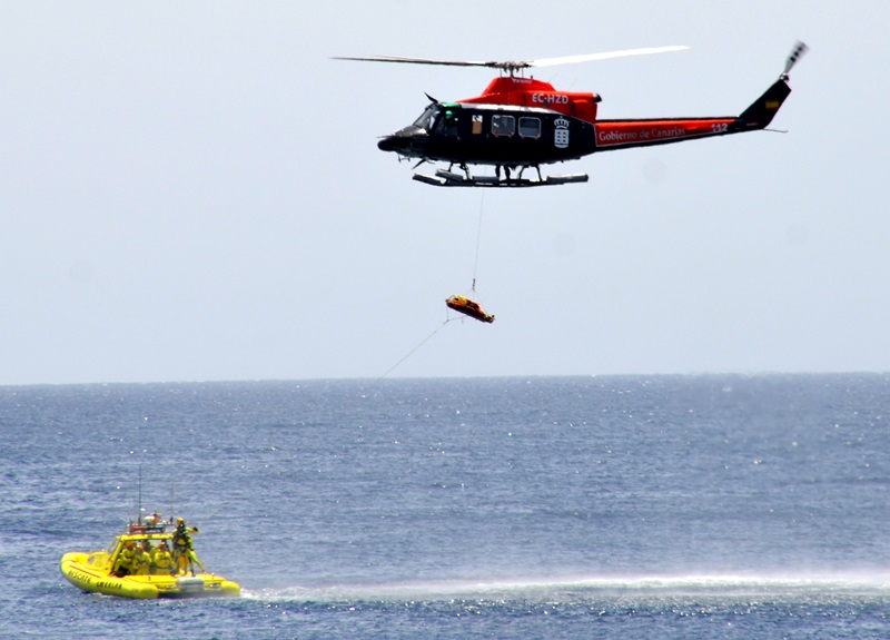 Puerto del Carmen acogió este domingo, con motivo de las fiestas del Carmen, un simulacro de emergencias, protagonizado por voluntarios de Emerlan y el helicóptero del GES.