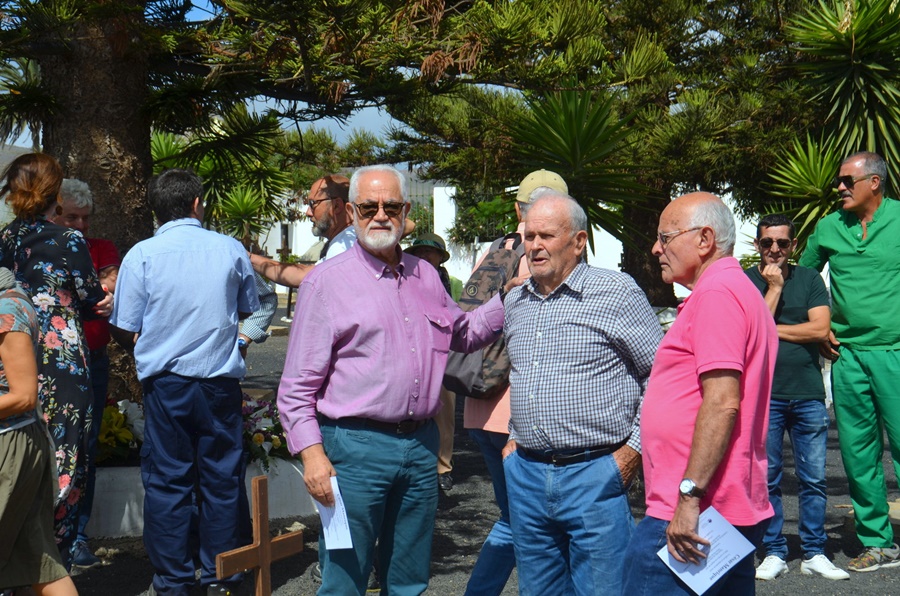 Los trabajadores de los Centros de Arte, Cultura y Turismo del Cabildo de Lanzarote siguen teniendo muy cercana y presente la figura de su creador, César Manrique. Por eso, como es tradición, un grupo de representantes de la plantilla se dio cita este miércoles en el cementerio de Haría para recordar y mostrar su cariño y respeto al genio, tristemente desaparecido tal día como hoy hace 27 años. Estuvieron acompañados por el vicepresidente del Cabildo de Lanzarote, Jacobo Medina; el consejero delegado de los Centros, Juan Félix Eugenio; los alcaldes de los ayuntamientos de Haría y San Bartolomé, Alfredo Villalba y Alexis Tejera, respectivamente, además de por otros consejeros de la Primera Institución insular, familiares, amigos y seguidores del artista.