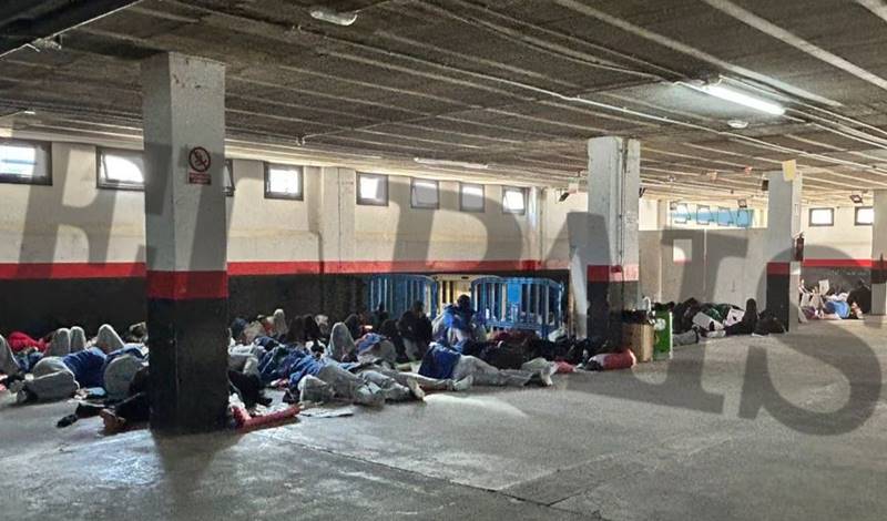La última decisión con respecto a la oleada migratoria de las últimas horas en Lanzarote, es que la Policía Nacional resguarde a los migrantes desembarcados en el estacionamiento de la comisaría de Arrecife. Los agentes han desplegado esterillas para alojar a cerca de un centenar de personas que se encontraban en el suelo esta mañana, según informaron fuentes policiales a El País, medio al que pertenece la imagen.