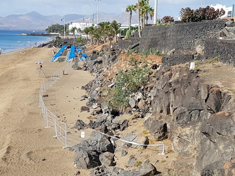 Hay que recordar que la obra de rehabilitación del muro de la escollera ubicado en Playa Grande (junto a la Avenida de las Playas de Puerto del Carmen) se adjudicó en octubre de 2017 pero al día siguiente, tras un fuerte temporal, la empresa renunció debido a que los costes se triplicaron.