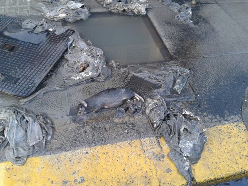Las aguas fecales han llenado la vía e incluso hay ratas muertas que han salido de las alcantarillas