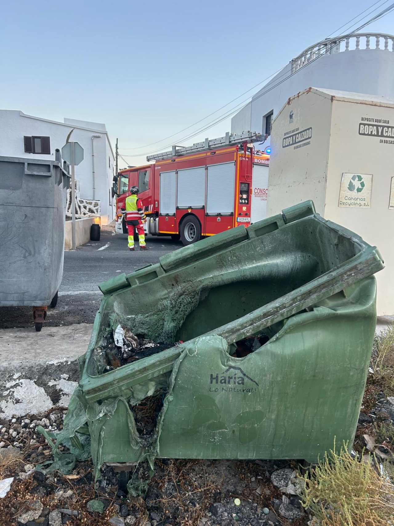 Eran las 20.30 horas de este sábado cuando los bomberos recibieron el aviso del incendio de un contenedor de basura orgánica en la calle El Rostro de localidad de Mala, en Haría.