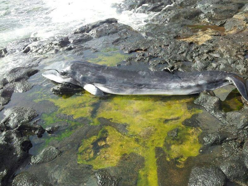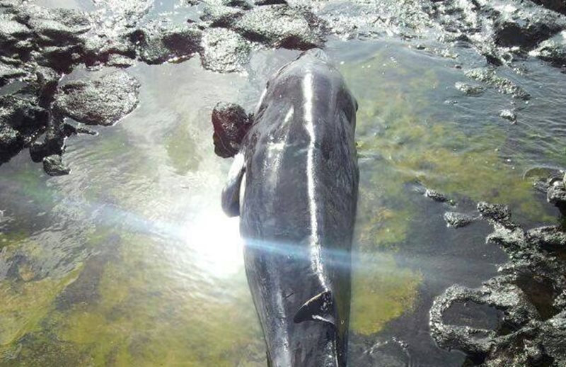Una cría de ballena muerta fue hallada por un vecino en la tarde de este martes, sobre las 19 horas, varada en Montaña Amarilla.