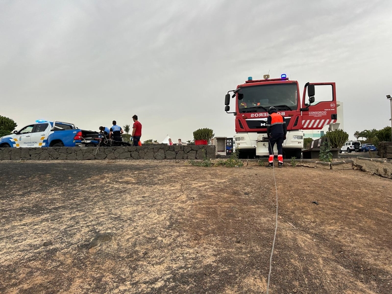 Fue la Policía Local la que requirió en la tarde de este viernes la presencia de los servicios de Seguridad y Emergencias del Consorcio para retirar una embarcación semihundida cercana a la orilla en la localidad turística de Costa Teguise, en las inmediaciones de la Avenida del Mar.