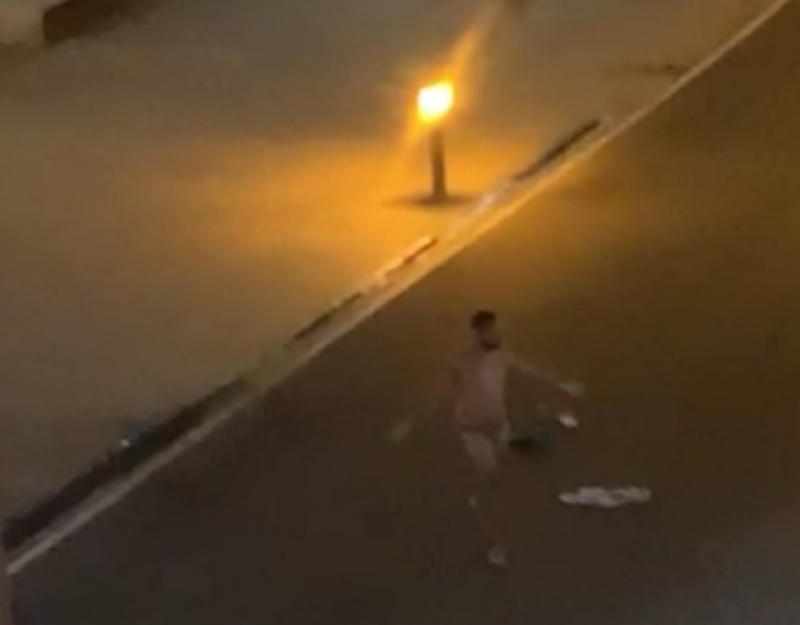 Gritando, haciendo aspavientos, sin mascarilla, en un claro estado de embriaguez, muy agresivo y… desnudo por completo, así iba un hombre en la noche del martes por la Avenida Marítima, increpando a quienes por allí pasaban.