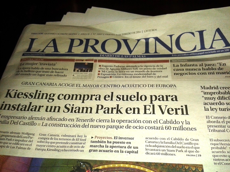 Envidia en el sector empresarial lanzaroteño ha creado el anuncio del parque acuático que finalmente el inversor alemán Wolfgang Kiessling, promotor de Loro Parque, construirá en Maspalomas.