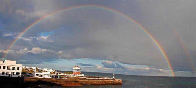 Estos últimos días de lluvia han dejado en Lanzarote, entre otras cosas, imágenes pocos usuales en esta isla, y por lo tanto para el recuerdo. Tal es el caso de este arco iris completo, como enmarcando la localidad costera de Arrieta, y que nos ha cedido gentilmente para su publicación la página ‘Conocer Lanzarote’.
