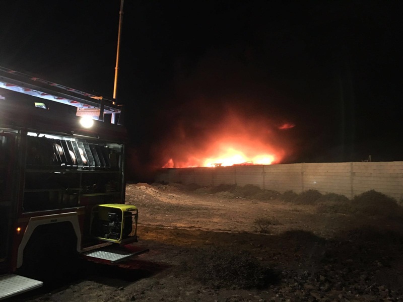 El desguace de Argana Alta, cercano al cementerio de Arrecife, ardía este sábado de madrugada.