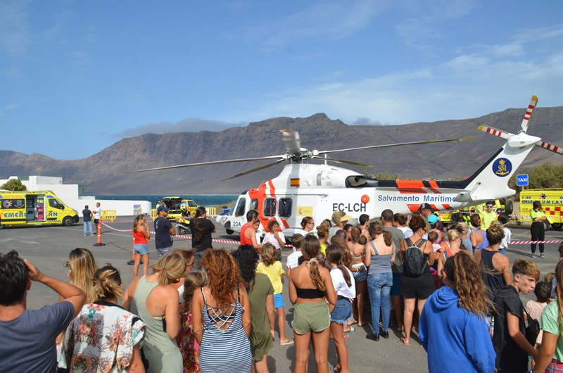 Caleta de Famara protagonizaba esta tarde un simulacro de rescate marítimo, realizando por la ONE Emerlan, conjuntamente con Salvamento Marítimo, Ayuntamiento de Teguise y Protección Civil de Teguise, y dentro de las fiestas del Sagrado Corazón de María que se celebran en la localidad.