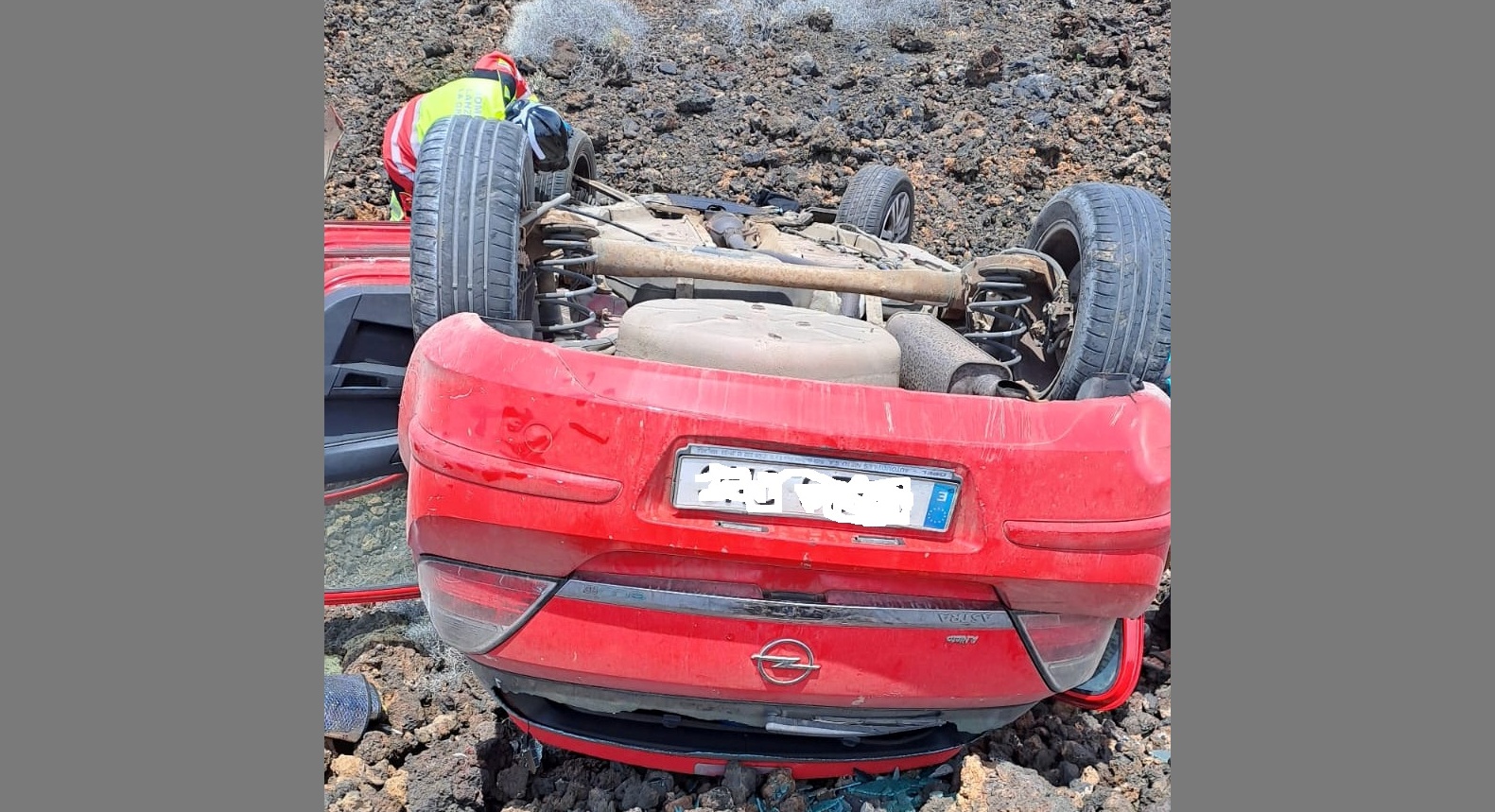 Una hora más tarde, los Bomberos eran alertados de un salida de vía con vuelco total en la LZ1, rumbo a Órzola. Al llegar comprobaron que el vehículo había volcado totalmente, y su único ocupante había salido del mismo por su propio pie. El conductor indicó que no precisaba atención sanitaria.
