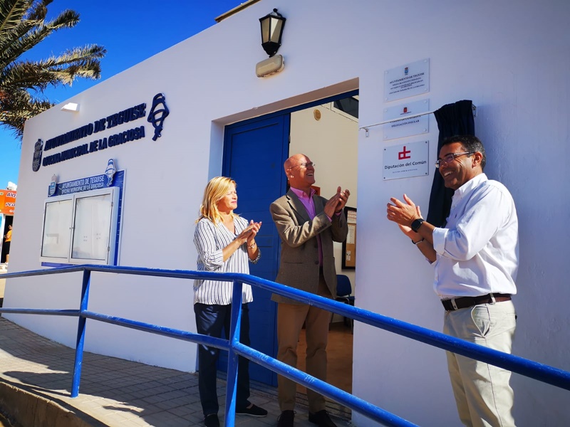El Diputado del Común, Rafael Yanes, y el alcalde de Teguise, Oswaldo Betancort, junto a la concejal de La Graciosa, Alicia Páez, inauguraron este miércoles la oficina administrativa del Diputado del Común, ubicada en la Oficina Municipal de La Graciosa, y que a partir de ahora atenderá también las quejas y peticiones que los habitantes de la octava isla dirijan a la administración regional.