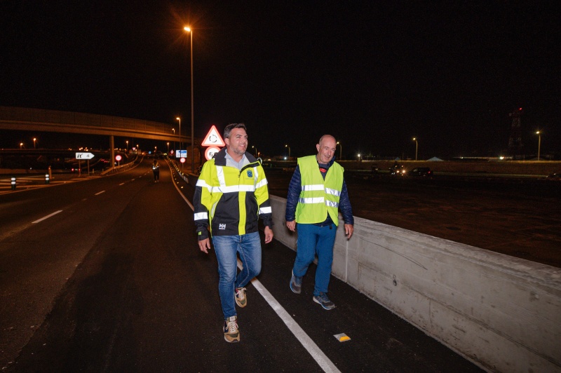 El vicepresidente y responsable de Obras Públicas, Jacobo Medina, se trasladó en la noche de este martes hasta la obra para supervisar el estado de la intervención. "Estamos muy contentos porque la obra está ya en su fase final, con las labores de asfaltado y pronto se colocarán las biondas y los guardarraíles", explicó Medina.