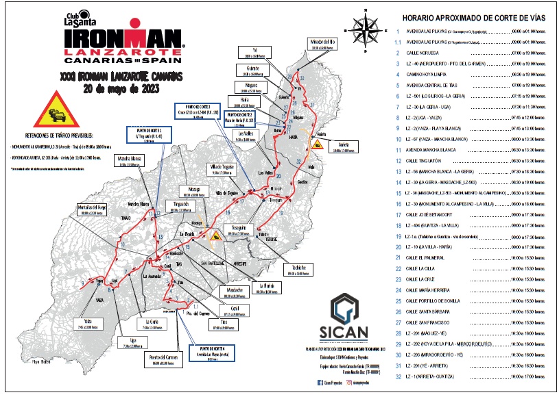 El horario de corte de la LZ-67 (Yaiza – Mancha Blanca) se iniciará a las 8:00 horas, estimando su reapertura a las 13:30 horas. En esta franja horario, únicamente se permitirá el acceso de vehículos de organización. Se recomienda el acceso de guaguas desde Yaiza a partir de las 13:30 horas.