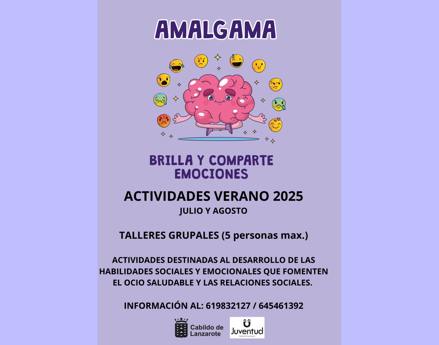 El Cabildo de Lanzarote, a través del Área de Juventud que dirige Aroa Revelo, ha reactivado una nueva edición del programa "Amalgama, brilla y comparte emociones" en formato de verano, con talleres reducidos dirigidos a jóvenes de Lanzarote y La Graciosa. La iniciativa busca reforzar el trabajo realizado durante el curso escolar en materia de salud emocional, bienestar personal y habilidades sociales.