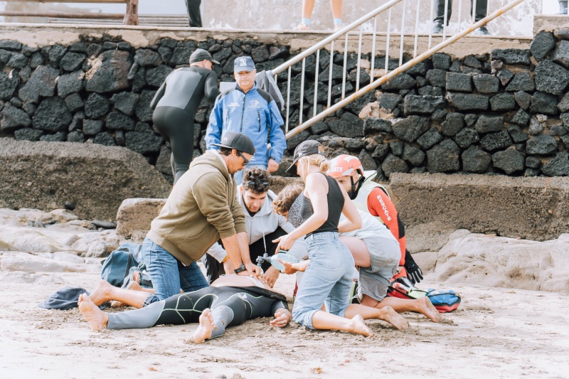 Aprovechando el cierre de estas jornadas, el presidente del Consorcio, acompañado del gerente, Enrique Espinosa, y del técnico del Servicio Canario de Salud, Benjamín Nieves, entregaron los diplomas de realización del curso de simulación de rescate acuático al equipo de surf Canarias Water Safety, así como un tablero espinal de rescate para uso del club.
