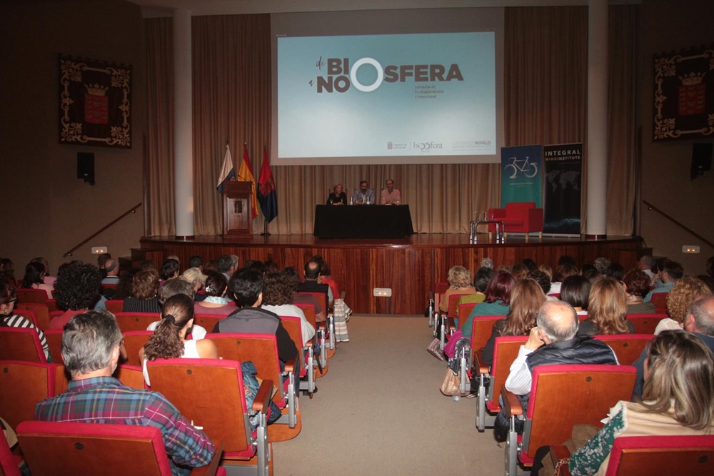 Más de 300 personas se dieron cita el pasado viernes en el Salón de Actos del Cabildo de Lanzarote para participar en las 'Jornadas de la Biosfera a la Noosfera. Ecología mental y emocional', organizadas por la Oficina de la Reserva de la Biosfera del Cabildo de Lanzarote, en coherencia con los Objetivos del Milenio y en colaboración con el Integral Mind Institute.