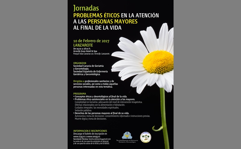El Cabildo de Lanzarote, a través del servicio de Geriatría, adscrito a la Consejería de Sanidad, gestionada por el vicepresidente primero de la Corporación, José Juan Cruz, colabora en la organización, junto a la Sociedad Canaria de Geriatría y Gerontología, y a la Sociedad Española de Enfermería Geriátrica y Gerontológica, de la jornadas “Problemas Éticos en la Atención a las Personas Mayores al Final de la Vida”.
