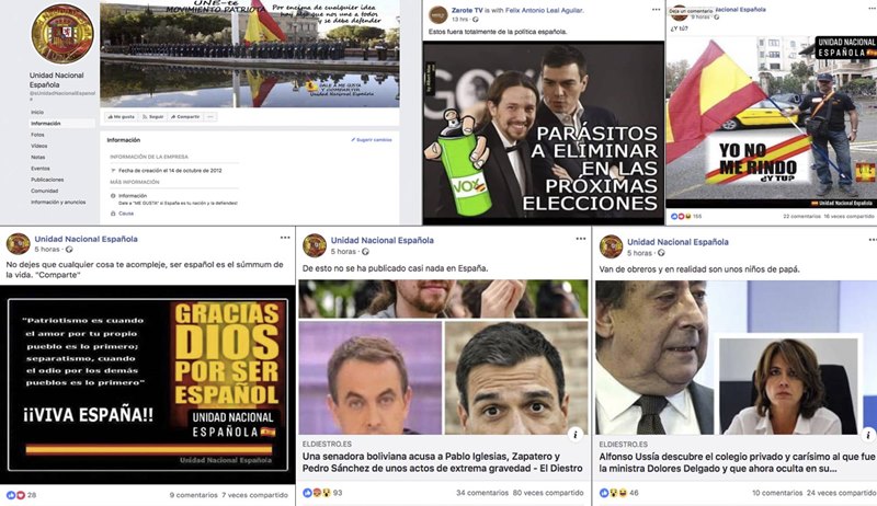 Estos comportamientos violan las políticas de Facebook. La página Lucha por España ha sido suprimida por sus cambios de nombre: desde 2013 se había llamado sucesivamente Mirarpeliculasgratis.com, Mirar películas y Películas de España.