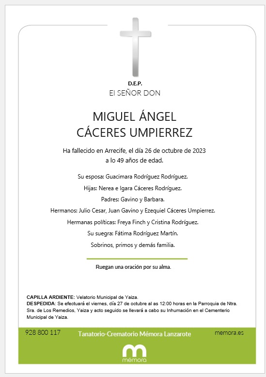 El ex concejal del Ayuntamiento de Yaiza por Coalición Canaria, Miguel Ángel Cáceres, fallecía esta pasada noche a los 49 años de edad.
