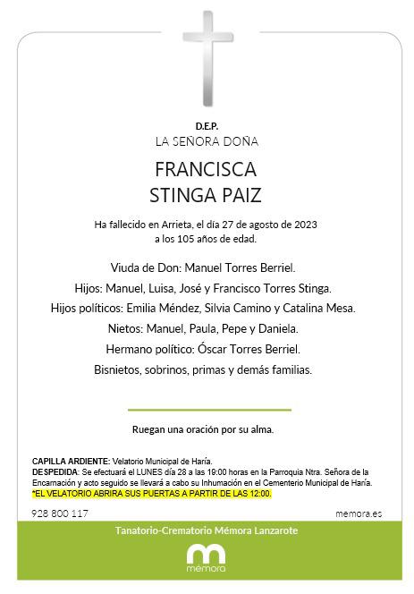 Fallece Francisca Stinga Páiz, madre de José Torres Stinga