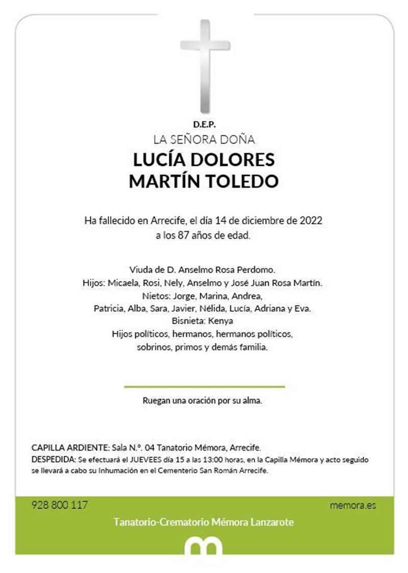 Fallece Lucía Martín Toledo