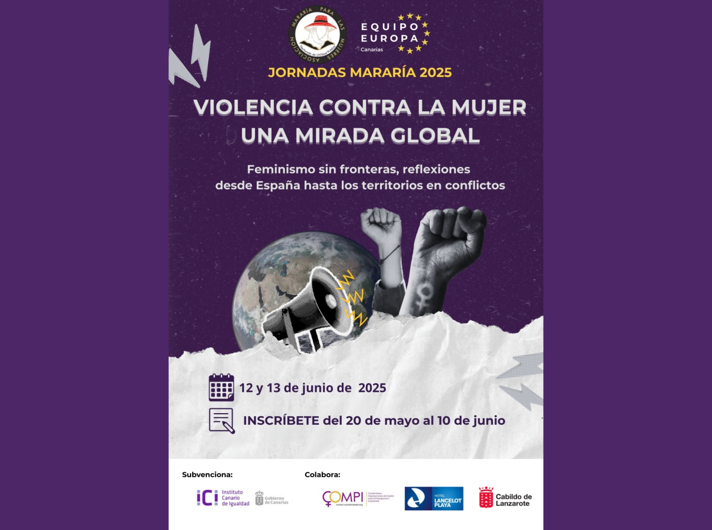 Las jornadas anuales de la asociación social y cultural para las mujeres Mararía, en colaboración con Equipo Europa Canarias, asociación juvenil europeísta y apartidista vuelven a reunir en Lanzarote en 2025 el mensaje, la reflexión y las advertencias de algunas de las voces feministas más influyentes de nuestros días, tanto del ámbito nacional como internacional.